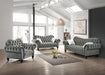 Gracie Transitional Style Gray Sofa with Espresso Legs, 39 x 36 x 92, 96lbs. Cosmos Furniture's Gracie Gray transitional style gray Sofa with espresso finish wood. Mid-Century modern Danish styling serves as the driving design inspiration in the Gracie Gray set collection. Offered in gray finish, Gracie Gray Sofa serves as a distinct contrast to espresso turned legs. The crystal button tufting provides focal interest as subtly curved rolled arms give way to the slightly splayed back. Contrasting throw pillows makes this Sofa very inviting. Throw pillows are included. Matching pieces are sold separately to complete the set. - Transitional Style Gray Sofa - Espresso finish Wooden Turned Legs - Button tufted tight back - Curved rolled Arms - Nail Head trim - High-density foam - Strong hardwood frame - Drop in-coil - Two (2) Throw Pillows included - Matching pieces sold separately - -