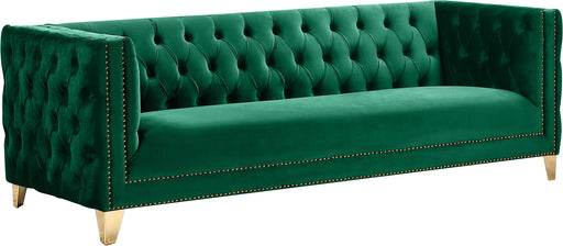Upholstered in soft green velvet, this Michelle sofa is sumptuously glamorous. Designed for upscale living, this chair features rich gold nail head...