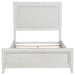 Refresh the look and feel of your bedroom with the inviting character of a modern upholstered bed. The bed features a wood frame in a distressed white finish that highlights its grain details. The headboard is a squared design complete with a padded panel upholstered in white for a monochromatic effect that's clean and contemporary. A low footboard completes the look and creates an open, inviting profile for your bedroom. Key Features: • A modern upholstered bed offers a clean-lined, contemporary silhouette • Distressed white finish highlights wood grain details to create texture and depth • Padded headboard features white fabric for a soft, inviting look and feel in your bedroom • This bed features a low footboard for an airy open look and requires a foundation